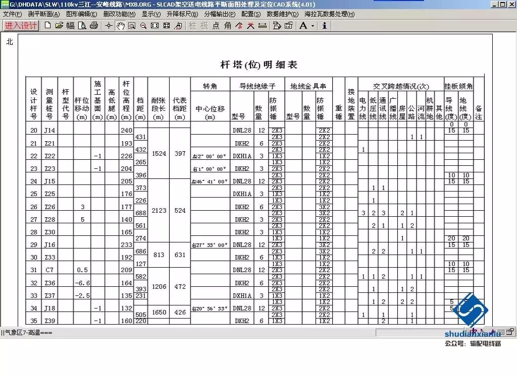 【前言】小编刚开始工作时,架空输电线路的平断面都是采用毫米格纸进行绘制,然后采用定位弧垂模板绘制弧垂曲线进行杆塔定位。后面随计算机技术发展,架空输电线路设计采用计算辅助设计越来越多。小编最开始接触的的平断面及杆塔地位辅助设计软件是西安思维,同一年晚些再接触北京导亨。后面的工作中,小编在架空输电线路设计平断面处理中采用道亨的《SLCAD架空送电线路平断面图处理系统》与《SLCAD架空送电线路定位CAD系统》,现在也是大部分设计单位采用的软件之一。采用该软件作为设计人员需要不定期的对基础数据进行数据维护,根据软件的使用说明书对基础数据维护较容易。因为辅助软件不能按照人工那样就行详细的完整准确的校核,为计算方便与统一,部分数据是进行统一归纳处理使用,与我们实际人工计算还是有一定的差异,所以杆塔库的部分数据维护对部分朋友易搞混淆。长期有朋友咨询对杆塔库的部分数据不知怎么根据杆塔进行参数进行编辑,小编编写本期就针对这部分朋友进行解惑。下面小编根据软件说明书,自己的经验与收集整理的资料与大家分享,其介绍不一定保证其准确性,具体以咨询道亨相关技术人员的解释为准。