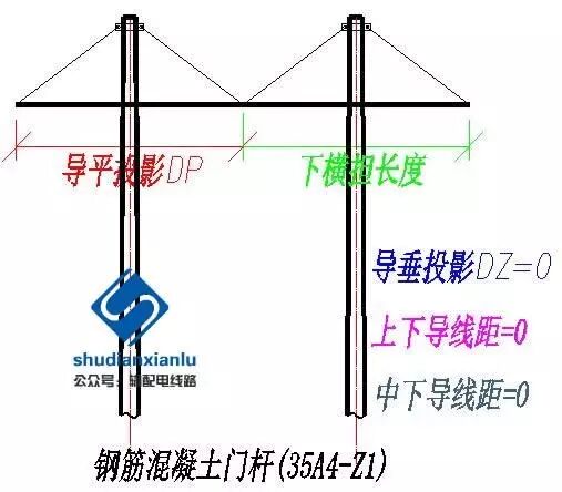【导垂投影DZ(m)】——同回路中,导线投影到垂直面上的最小垂直距离,校核导线间距离时使用,多回路中与【导平投影DP(m)】取值同一回路。(电气校验)