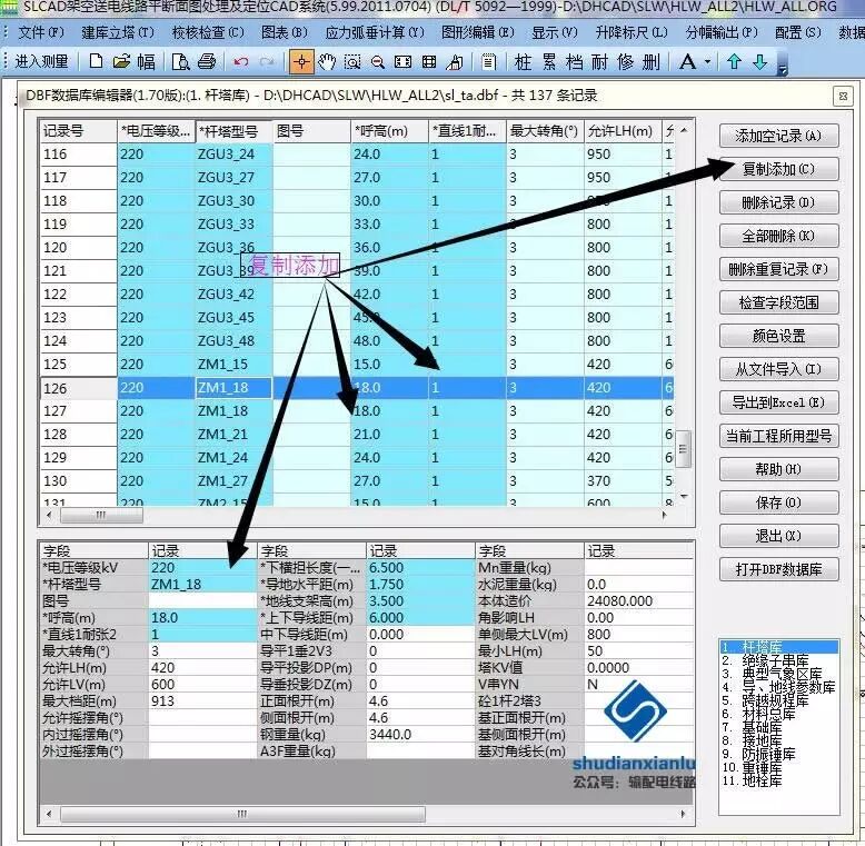 点击左上侧任意一塔型的数据库,左下侧就会有该杆塔的数据参数,如下图:
