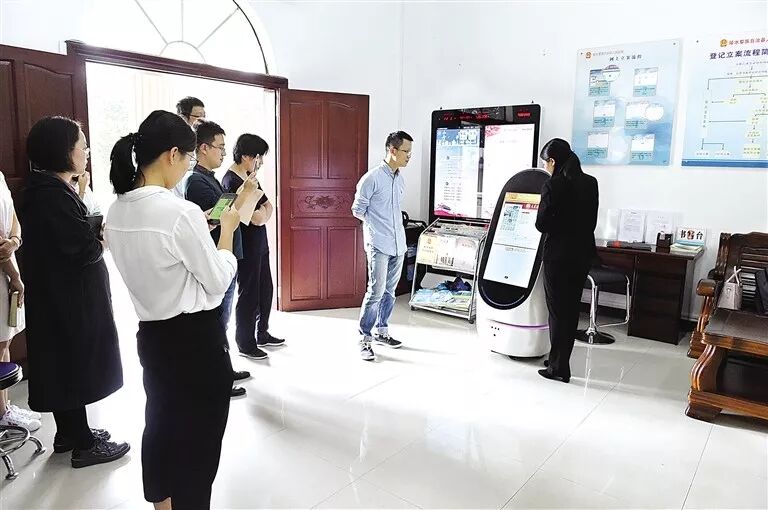 ,一个可以自行移动、原地转圈、业务能力强、能听会说、服务热情的“陵家妹妹”引起了大家的注意。它有着呆萌的水滴形外观,身高1.4米,拥有200万像素摄像头,支持人脸识别功能。“陵家妹妹”卡通衣着黎锦服饰,这是该院近日上岗的“新导诉员”——新生代智能导诉机器人“陵家妹妹”。它作为一款应用于司法服务的智能机器人,依托强大的多能力融合及大数据处理能力,已具备分流引导、业务咨询、法律查询、定点讲解等多种功能,可完成电子读报、语音唤醒、虚拟导诉、自动寻路及规避障碍物等行为。采用人工智能引擎,充分运用“互联网+”手段,做到了法律知识自主学习和个性化交流互动。无论当事人提问是否专业,“陵家妹妹”总能有效打破知识的局限和沟通的障碍,耐心地引导并提供服务咨询,满足当事人的需求。