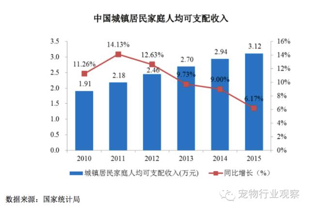 国家经济总量持续增长带来居民可支配收入的提高是宠物医疗行业快速发
