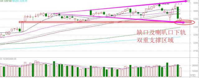 短期看,沪指回补3331点缺口后有资金护盘,3300-3330将是多头重要防线,也是国庆后市场喇叭型震荡区间的下轨,这里变盘几率较大,可能发生强反弹或破位引发中期调整。鉴于两市出现急剧缩量,地量见地价概率较大,因此本周反弹概率大于破位几率。