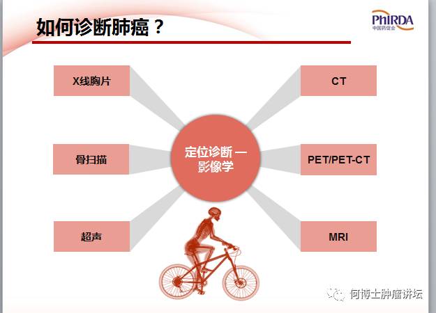 肺癌可先通过影像学手段进行定位诊断,包括X线胸片,CT,MRI,PET-CT,超声或骨扫描等。这些影像学检查是筛查和诊断肺癌非常重要的依据。