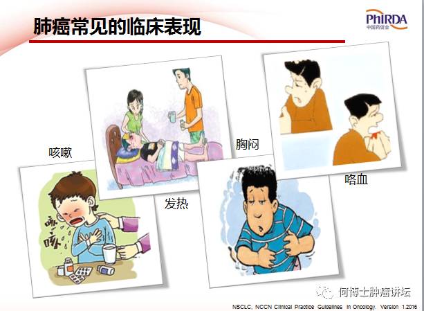 1. 咳嗽 2. 痰血或咯血 3.气短或喘鸣 4. 发热 5. 体重下降