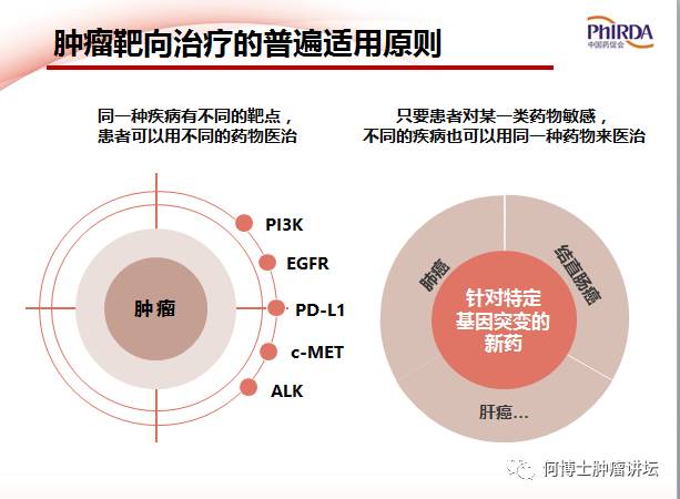 肿瘤的靶向治疗有普遍适用的原则,即同病异治和异病同治。
