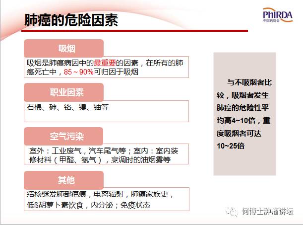 肺癌发生跟吸烟、空气污染、职业致癌因子等有关