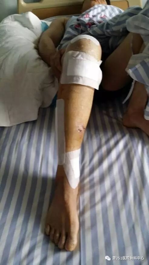4、胫骨骨折合并髌下肌腱处皮肤损伤;