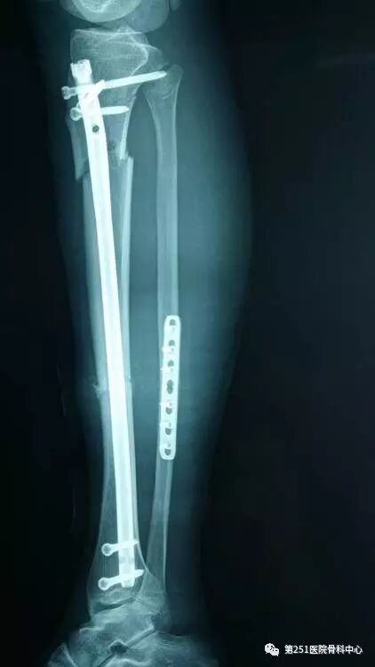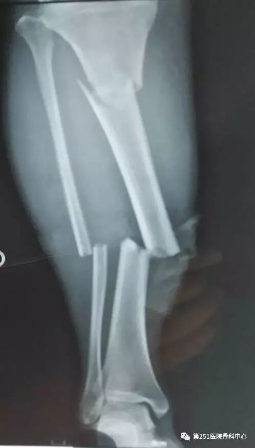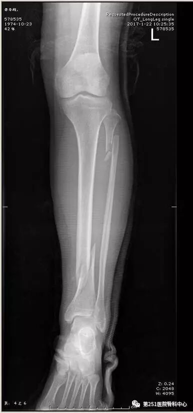 病例1:男性,40岁,车祸伤,胫腓骨多段骨折。