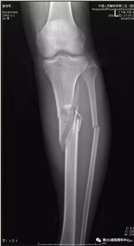 病例3:男性,43岁,车祸伤胫骨上段骨折。