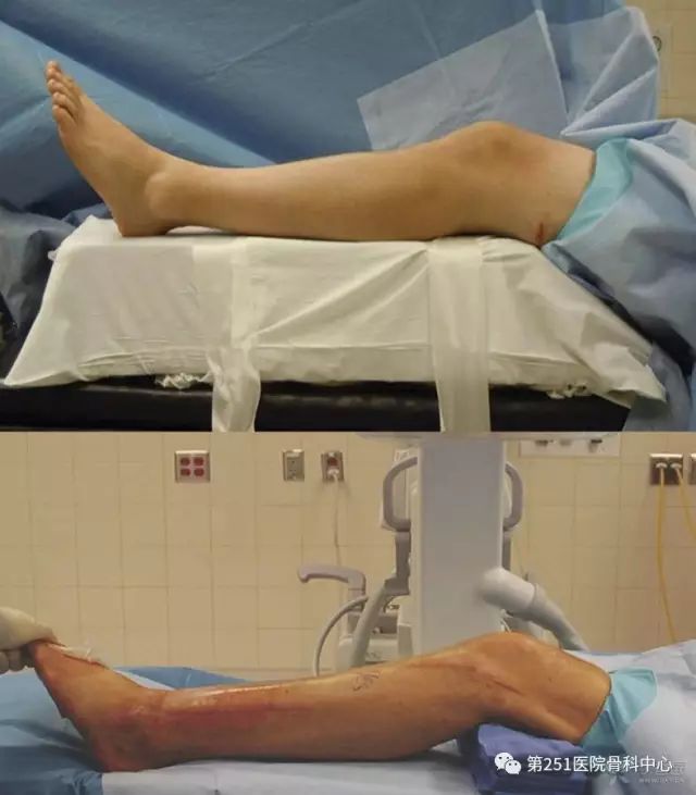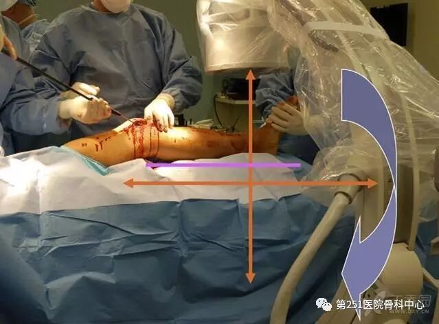 因此在手术时需要充分考虑到上述各个肌肉对胫骨近端骨折的影响。手术时将胫骨极度屈曲可以显著增加畸形的发生,而采用伸膝位进行置钉可以有效避免上述问题。