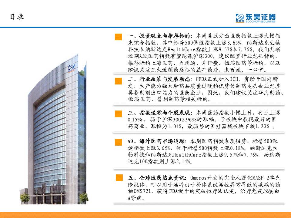 【东吴医药团队】