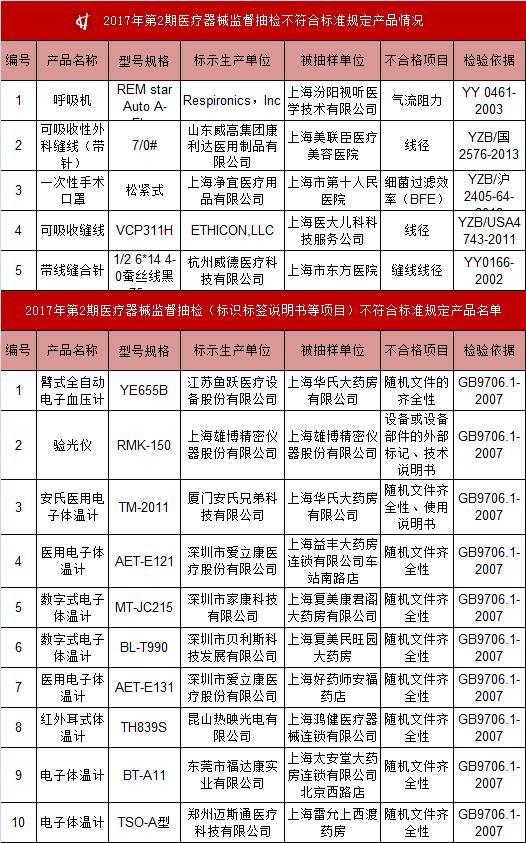 7月26日,上海市食品药品监督管理局发布2017年第2期医疗器械监督抽检质量通告。