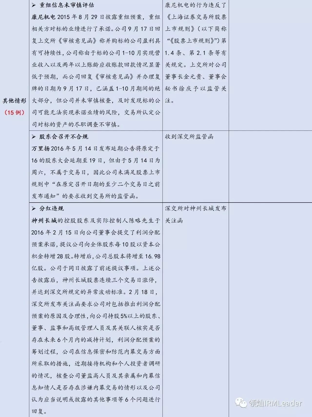 :、完整性、准确性、真实性提出了高要求,一方面,违规案例交易所出具的各类函件中,多次展开“刨根问底”式问询,主要表现在问询往往直击核心要害或者关键问题,若公司回应后仍不清楚的,交易所甚至不惜二问三问或停牌处理,直至公司做到完整、准确披露;另一方面,要求上市公司加强披露对其有重大影响的宏观和行业信息,避免披露格式化,增强信披有效性。在违规案例中,、对公司影响重大的行业信息缺失、行业类重大风险揭示不全面等问题。