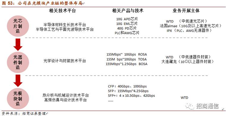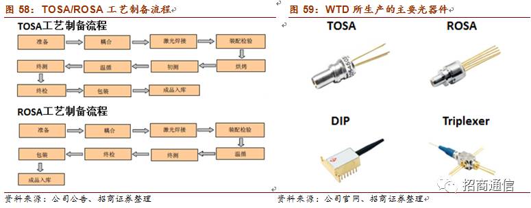 WTD具备光模块全产业链生产能力。并购之前,WTD是国内有源器件生产规模最大、品种最全的制造厂商,总体产能方面,器件达1500万对/年、模块达1000万只/年。
