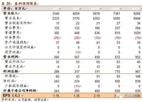 4) 其他业务:预计2017~2019年相应收入增速分别为10%、10%和20%;毛利率为25%、26%、27%。