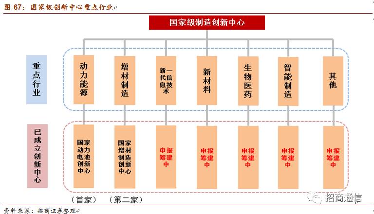 依托光谷产业集群优势,打造国家级信息光电子制造创新中心。2016年8月,工信部印发《关于完善制造业创新体系 推进制造业创新中心建设的指导意见》,意见指出我国在制造业升级的过程中要围绕重点行业转型升级和新一代信息技术、智能制造等领域创新发展的重大共性需求,建设一批创新中心,推动我国制造业向价值链中高端跃升,为制造强国建设提供有力支撑。到2020年,形成15家左右国家制造业创新中心;到2025年形成40家左右国家制造创新中心。目前,已成立的国家级创新中心仅有两个,一个是由有研总院所属的国联汽车动力电池研究院有限责任公司组建国家动力电池创新中心,另一个是由西安增材制造研究院有限公司筹建国家增材制造创新中心。