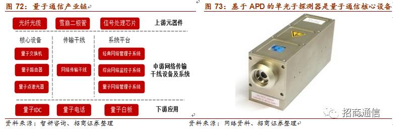 公司位于量子通信产业链上游,具备量子通信核心光电探测器研发实力。量子通信的产业链分为上、中、下游。上游主要是信号处理芯片、雪崩光电二极管(APD)等元器件和各类核心设备。中游主要包括网络传输干线提供商和系统集成商。下游主要是各种行业应用,如军事、金融、政务、商务等。提供的产品包括量子电话、机遇量子保密技术的IDC、量子白板等。光迅科技作为国内光器件龙头企业,在雪崩探测光电二极管(APD)等方面具有较强的研发实力,核心器件或将是公司切入量子通信产业链的主要抓手。公司目前在欧洲尝试光电子与量子通信的结合。