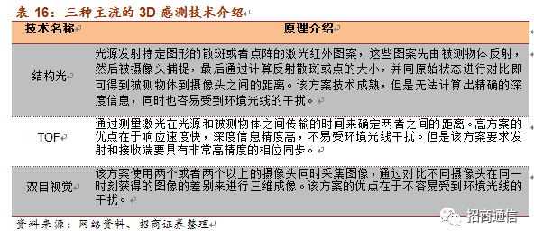 相比于传统2D成像技术,3D光学感测技术拥有空间立体测绘能力,在面部和手势识别中具有重要应用。3D光学感测技术是指通过非接触的方式获取三维物体及场景中表面形状三维信息的技术。这种技术突破了传统二维成像系统的局限,增加了人类对世界的认识理解能力,同时也因其对物体立体信息的获取,将在面部和手势识别中具有重要应用。常见的3D感测技术包括结构光、TOF(time of flight)和双目视觉。