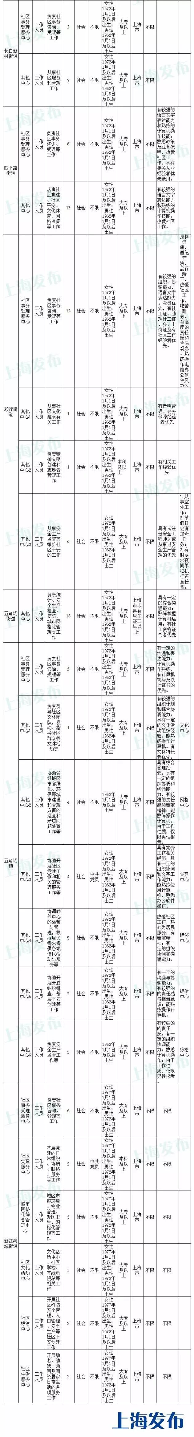 (一)招聘岗位为街镇各中心及居委会社区工作者、“两新”组织专职党群工作者、居民区专职党务工作者。