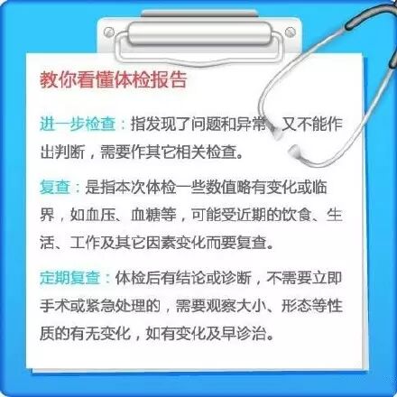 一些体检者看到体检报告有阳性结果就担心不已,但其实健康体检是面对大多数人群的初筛,有些指标本身就是处于一个动态水平上,检测到的是它在那一个瞬间的数值,因此仅仅根据体检结果是不能够直接下结论的,需要重复检测,或辅助于其他指标、其他检测,共同诊断。
