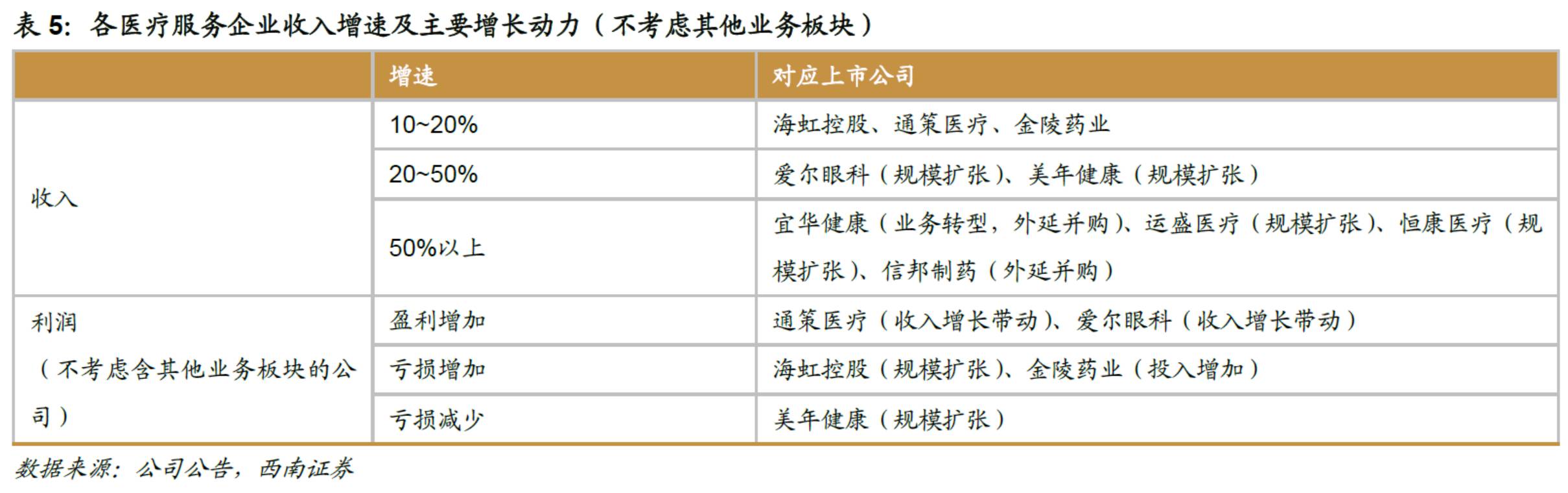 1) 政策红利将进一步释放,在健康中国战略和医改推进的大背景下,鼓励社会办医和医疗服务价格改革等政策将会进一步落地,推动医疗服务行业的发展;