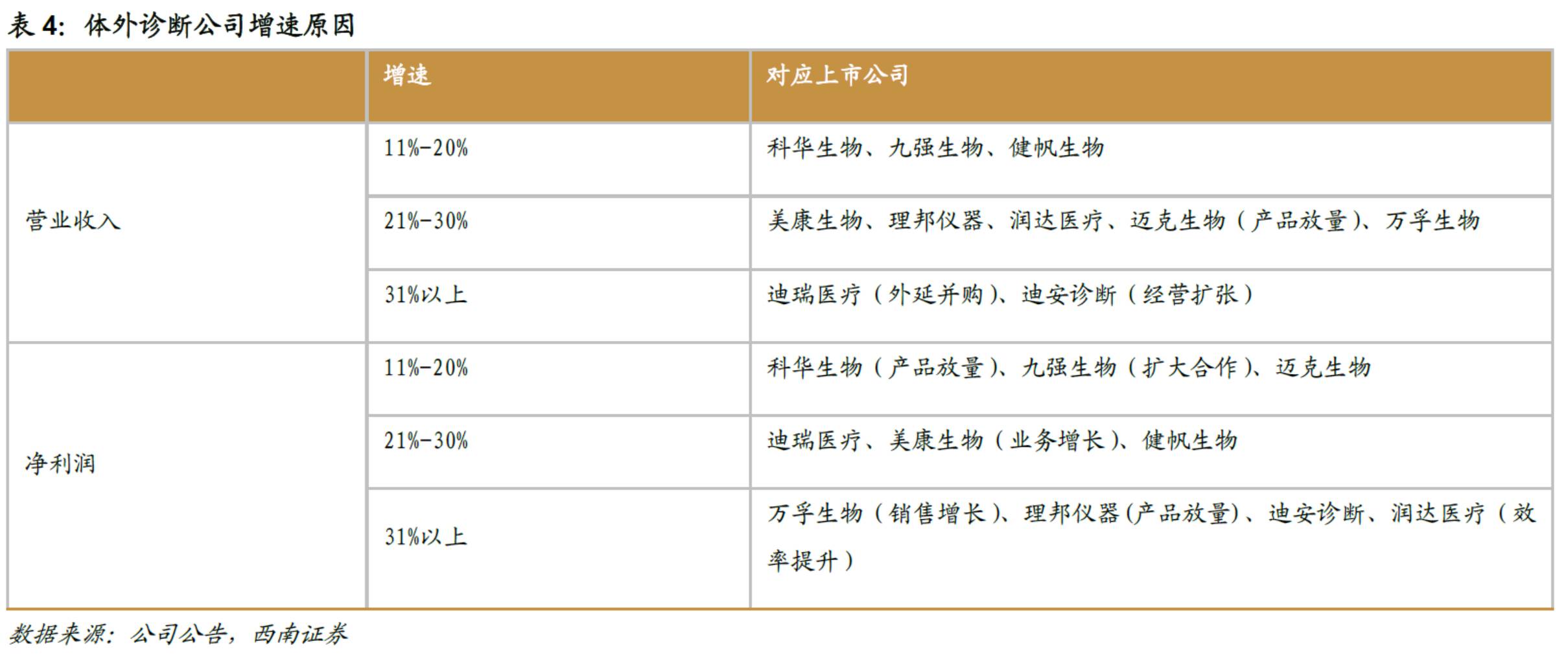 其中,利润增速在11%~20%的有3家、21~30%的有3家、31%以上的有4家。其中,迪安诊断收入增幅达100%,理邦仪器利润增幅高达270%。