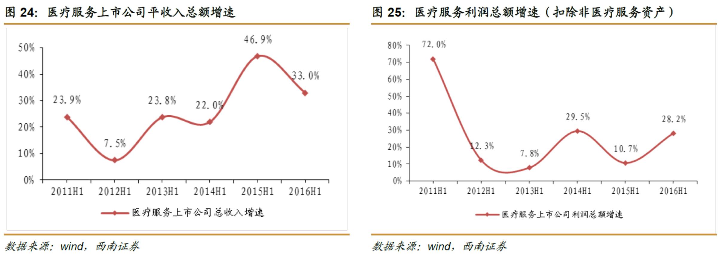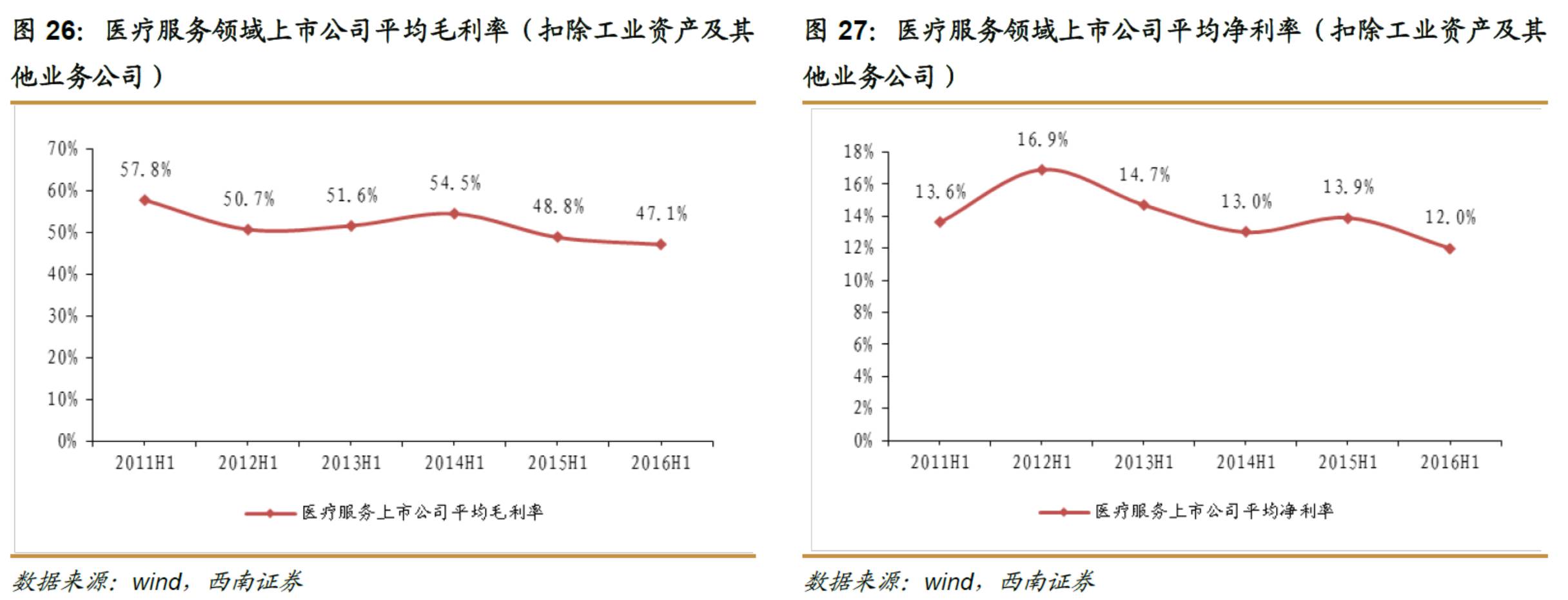 内生增长方面,2016H1医疗服务公司的收入维持在历年的高速水平,收入总额增速为33%,医疗服务公司的利润增速实现上涨,仅考虑医疗服务资产,利润总额增速为28.2%。