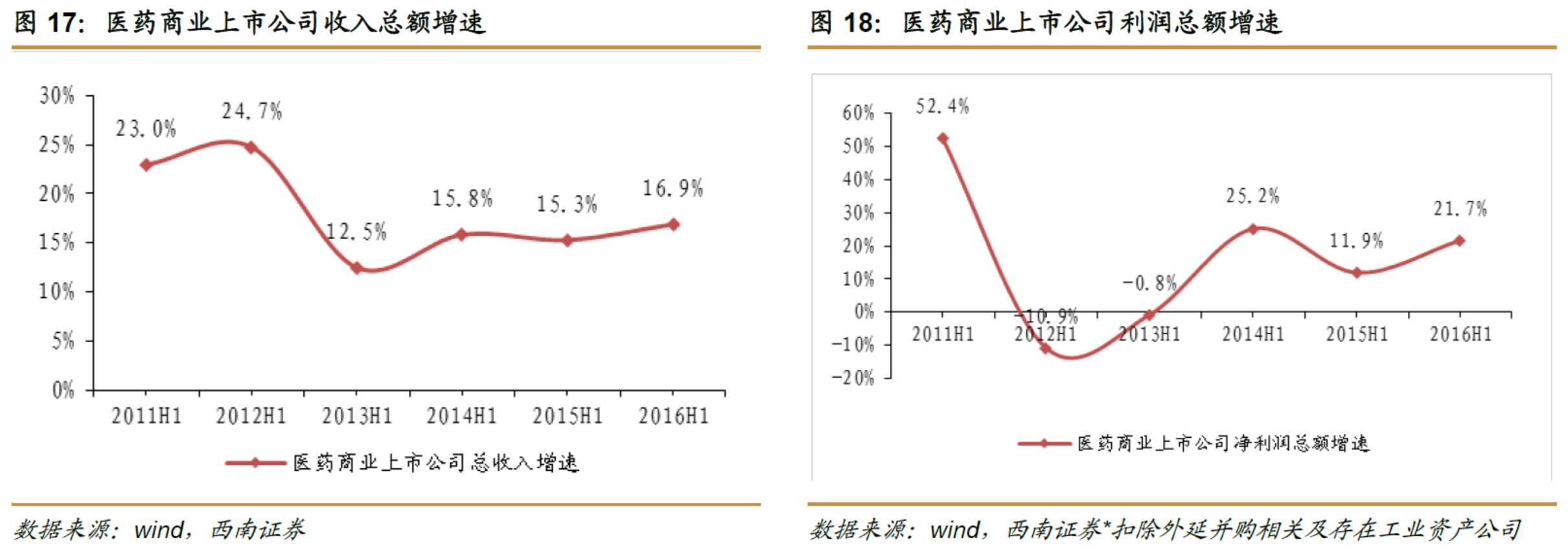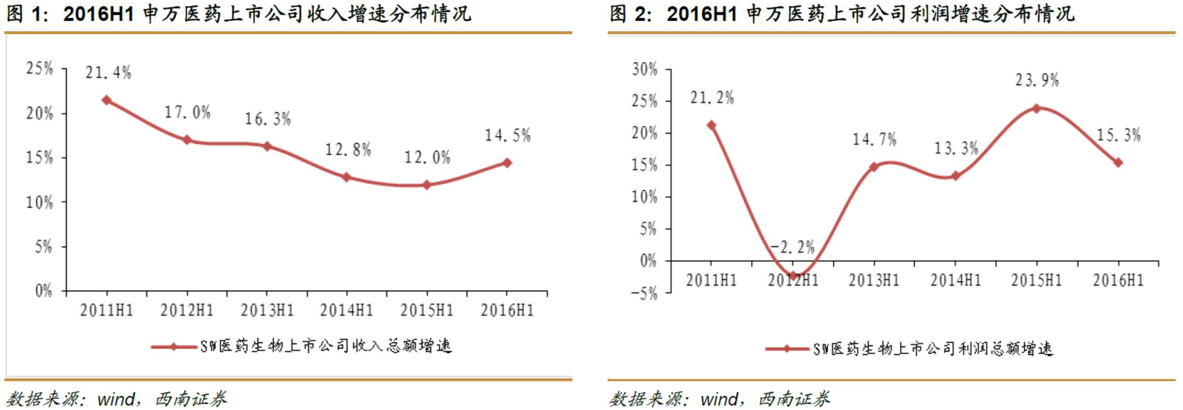 医药行业2016年中报已于近期披露完毕。2016H1申万医药上市公司营业收入总额、净利润总额增速分别为14.5%、15.3%;而同期医药工业行业收入、净利润增速分别为10%、13.6%。