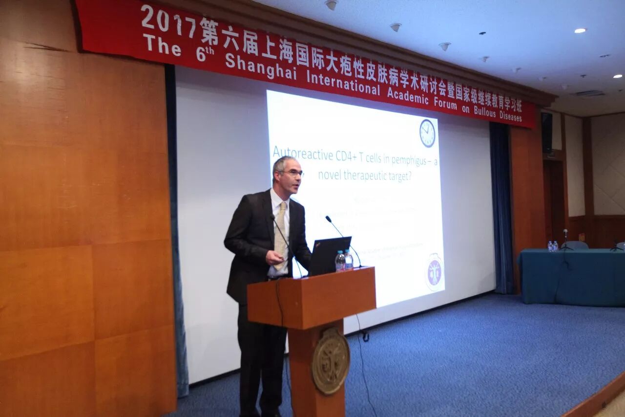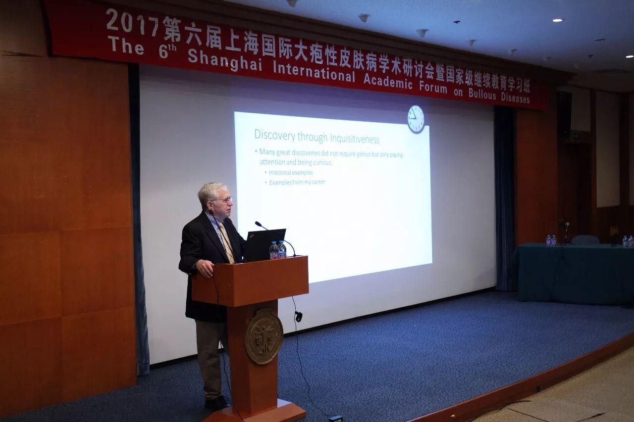 来自宾夕法尼亚大学的国际天疱疮领域的元老John R. Stanley教授做首场报告,通过和大家分享外科麻醉剂、可植入式隐形眼镜、天花疫苗和肉毒杆菌素祛除皱纹的发现过程,过渡到自己发现天疱疮是一种抗桥粒芯糖蛋白抗体介导的自身免疫性疾病及在大疱性脓疱病中葡糖球菌如何通过引起水疱进而突破皮肤屏障,表明了医学领域的一些新发现来自于是对事物的好奇和探索。