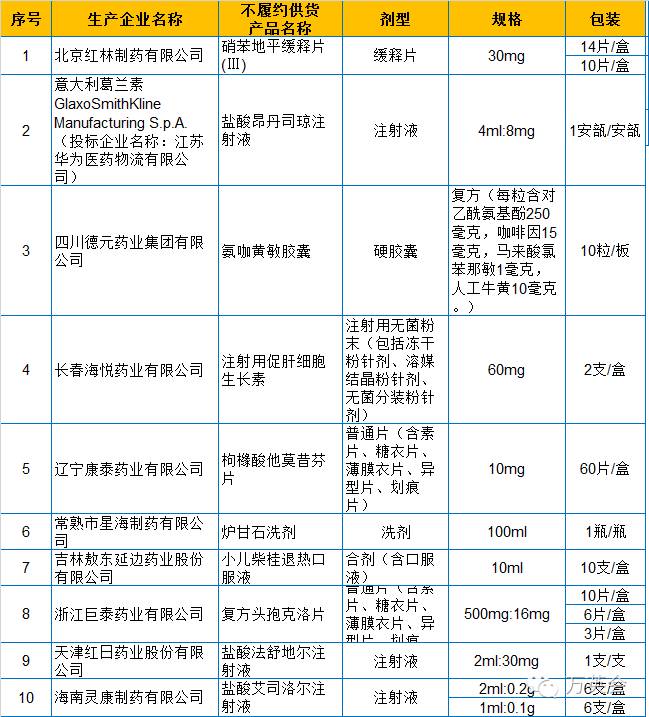 经省药采办专题会议研究,拟将我省新一轮药品集中采购履约执行以来,无正当理由不履约供货,造成医疗机构临床用药短缺的北京红林制药有限公司等10家企业,列为不诚信企业,并进行不良记录登记。现将上述企业予以公示,公示期:2016年9月21~27日(不含节假日)。如有异议,反映人必须提供真实有效、有针对性的证据,并于公示期内将加盖单位公章的书面材料递交至福建省医疗机构药品集中采购中心(福州市晋安区金鸡山路19号5层,联系电话:0591-87279375),逾期不予受理。