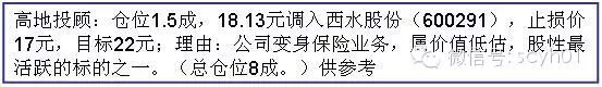 个股回顾 | 高地一号:仓位十成仓,模拟净值1.14;高地二号:仓位四成仓,模拟净值1.84 |