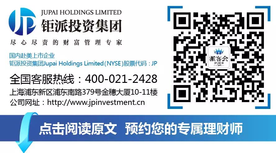 钜派投资集团(纽约证券交易所代码:JP)是一家中国领先的第三方财富管理服务提供商,业务聚焦财富管理产品的发行和为中国的高净值个人提供优质的产品咨询服务。钜派全面、个性化的客户服务以及细心筛选的第三方和自主研发的产品,已使其成为客户信赖的品牌。钜派广泛而又有针对性的覆盖了中国高净值人群。更多详情,请登录http://jupai.investorroom.com。