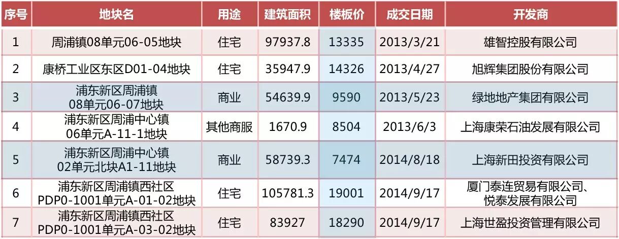 ●商业用地方面,2013年5月份由绿地摘得周浦镇08单元06-07地块,总建筑面积5.5万方,成交楼板价9590元/㎡,目前已建成集中型商业绿地缤纷广场,目前首层商铺报价5万元/㎡,已于2014年9月开盘,