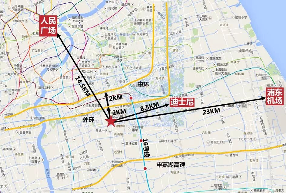 ●地块北临秀浦路,直通迪士尼,路程9KM,行车约10分钟内。