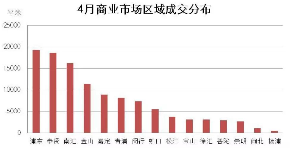 2015年4月,上海商业市场供求量纷纷上扬,供应量为14.91万平米,成交量为11.30万平米,环比分别上扬49%和57%。