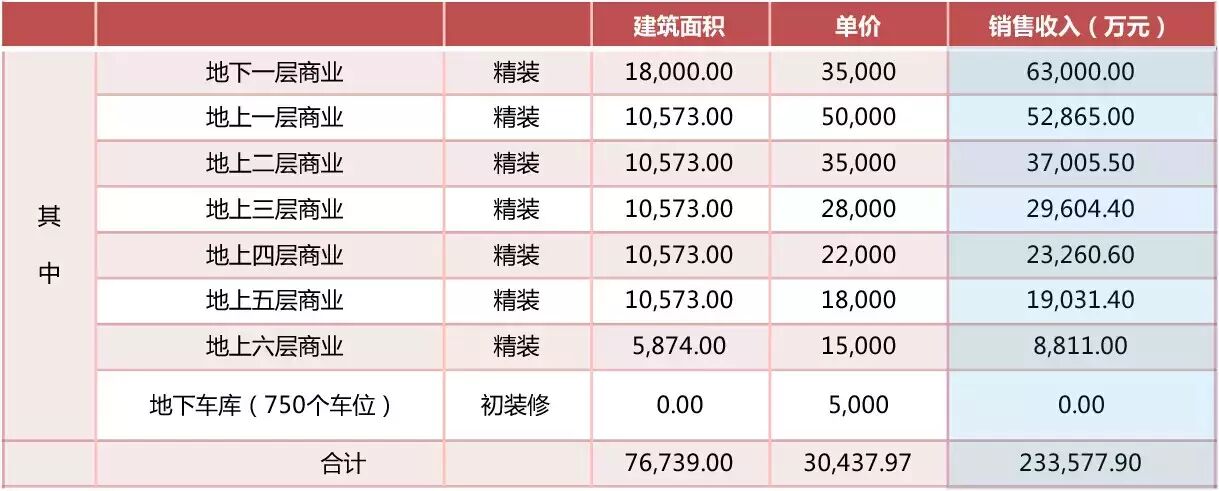 ●以周围三大商圈作为参照,本项目运营成熟后预计首层租金可以达到8-12元/㎡·天,据此反推首层售价可以达到5.2万元/㎡