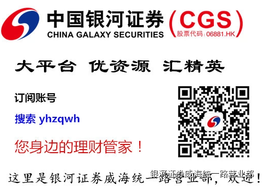 免责声明:本微信号提供的所有信息仅供参考,银河证券威海统一路营业部对该等信息的准确性、完整性或可靠性、及时性不作任何保证,并非作为买卖、认购证券或其它金融工具的邀请或保证
