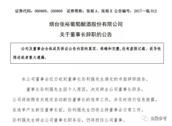 11日晚间,烟台张裕葡萄酿酒股份有限公司(张裕A.00086.SZ)发布了一则公告,张裕A董事长孙利强因个人原因,辞去董事长职务。