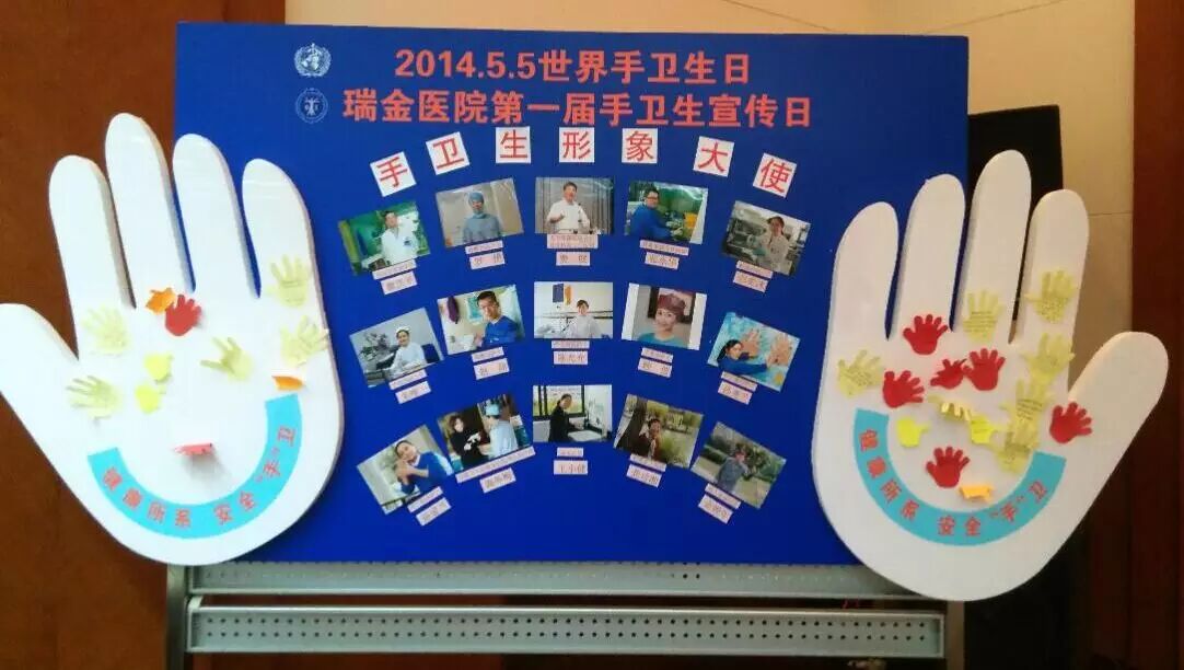 2014年5月举办瑞金医院第一届手卫生宣传日。围绕 “健康所系,安全‘手’护”的主题,开展了三个系列活动,从医护员工勤洗手以减少交叉感染,降低院内感染率出发,强调医护员工手卫生对阻止耐药菌传播的重要性。本次活动主要开展了三个活动:1.选出我院手卫生形象大使(医、护、工勤、患者、家属);2.门诊手卫生宣教;3.幼儿园手卫生宣教。相关信息在电视台,我院微信平台进行报道。