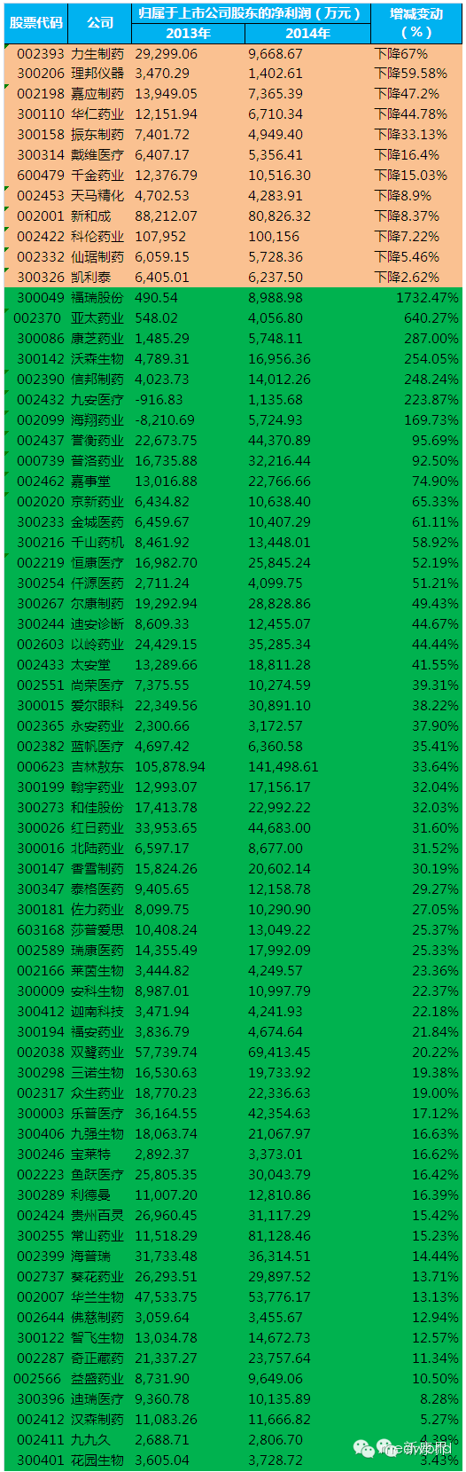 2014年净利润下降幅度接近50%的包括力生制药、理邦仪器、嘉应制药和华仁药业。