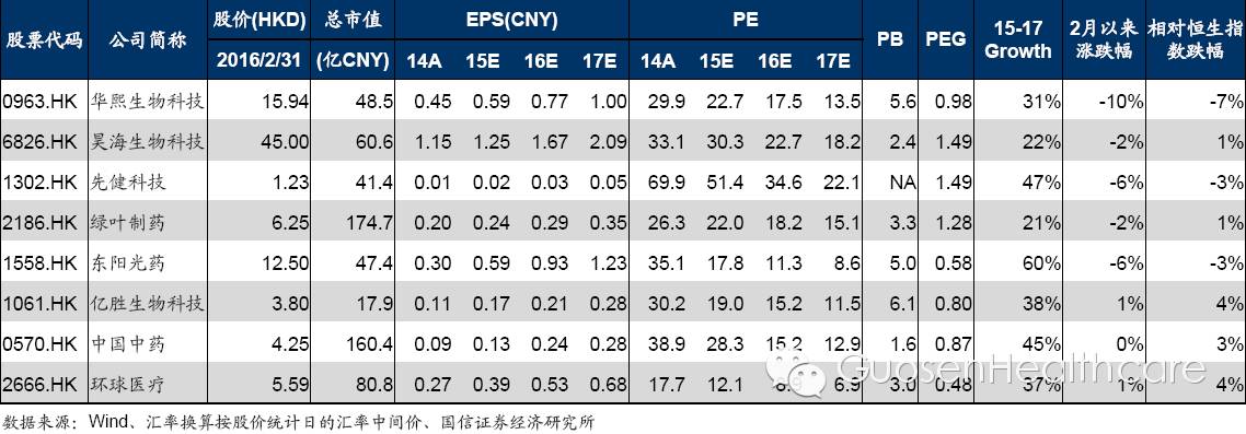 风险偏好再度降低,寻找坚实的业绩支撑。2016年2月A股市场在温和反弹后的最后三个交易日暴跌,医药板块也未能幸免,下跌2.92%,其中中小创高估值的题材股跌幅居前,再度显示目前概念炒作在A股医药板块的弱势。截至2月29日,医药板块16PE为27倍,目前在历史估值中枢之下。我们延续2月投资策略“回避单纯主题炒作”的观点,建议投资者重新审视上市公司的预期兑现情况,又值年报披露期,推荐关注业绩兑现确定性高的白马股以及符合政策和产业趋势方向的个股。