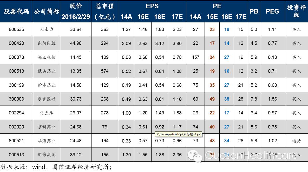 2016年3月A股医药板块策略:坚实的业绩,正确的方向。选股思路上,我们首选估值较低,资源稀缺且业绩向好的白马股,同时也考虑处于产业顺势的公司具备明显的可持续发展潜力,使得投资组合起到抗跌助涨的效果。综上,我们推荐的3月投资组合为:东阿阿胶、天士力、海王生物、康美药业、京新药业、信立泰、华海药业、丽珠集团和翰宇药业。