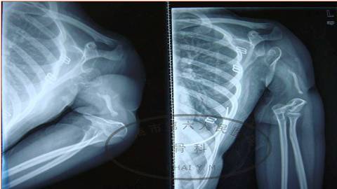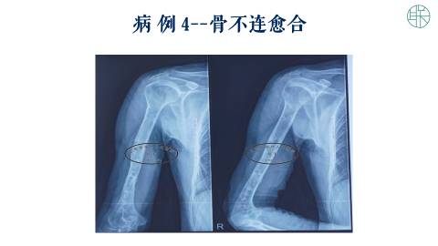 这是一个,肱骨干骨不连的病例。