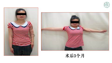 从术前和术后的比较看,我们看左上肢得到了明显的延长。