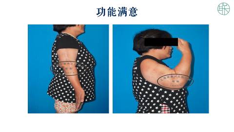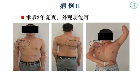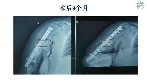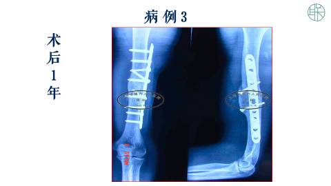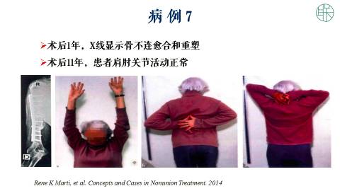 手术以后,她一年的时候,X片显示骨不连愈合,和重塑良好。这个病人术后随访了11年,患者的肩关节功能,和肘关节功能都保持正常。
