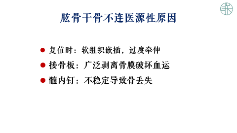 也就是我们所说,医生需要注意的:在复位的时候,对软组织的嵌插,和过度牵引会导致骨不连;使用接骨板的时候,会广泛的剥离骨膜,破坏血运,就会产生骨不连的后果。