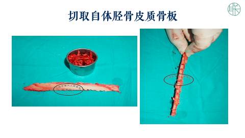 从胫骨的皮质,切下一段骨板,作为一个对侧的支撑板。
