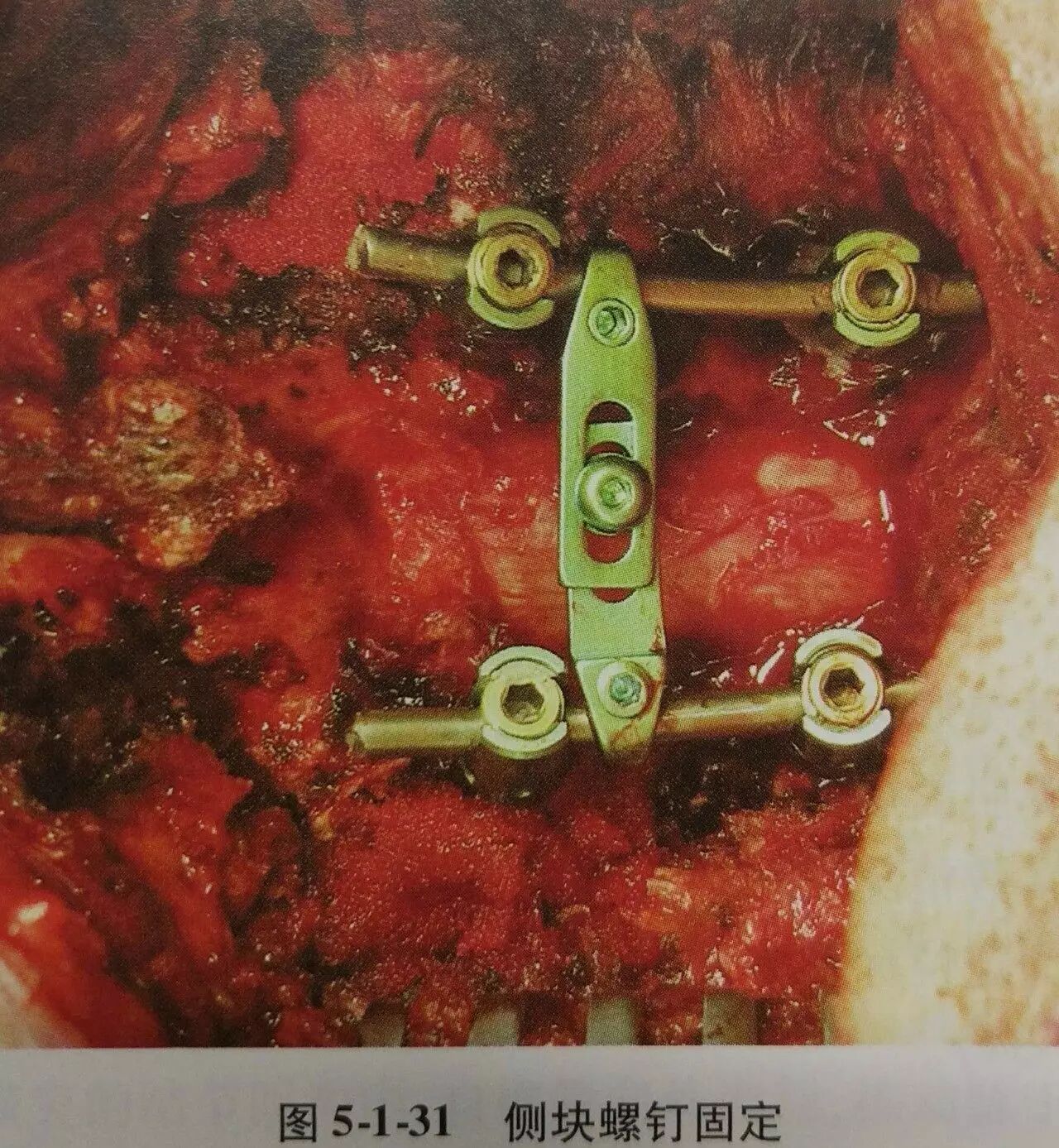 侧块螺钉向外成角,损伤椎动脉几率变小,但损伤神经根几率变大,所以螺钉长度不能太大,以12〜14mm就足够了。一旦出现神经根刺激症状,应用神经营养药物及对症止痛药物,多能缓解症状,不用取出螺钉。