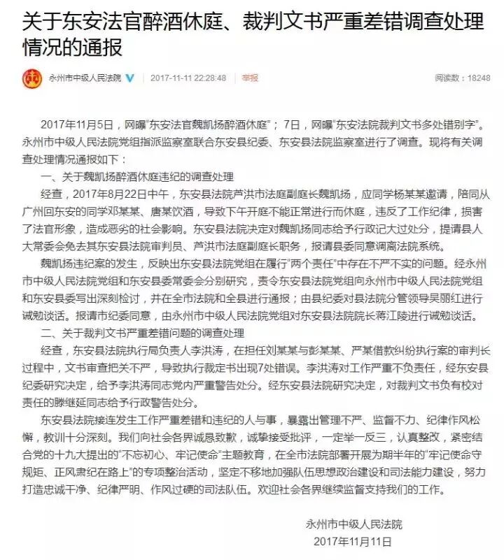 ,暴露出管理不严、监督不力、纪律作风松懈,教训十分深刻。我们向社会各界诚恳致歉,诚挚接受批评,一定举一反三,认真整改,紧密结合的提出的“不忘初心、牢记使命”主题教育,、正风肃纪在路上”的专项整治活动,,努力打造忠诚干净、纪律严明、作风过硬的司法队伍。欢迎社会各界继续监督支持我们的工作。