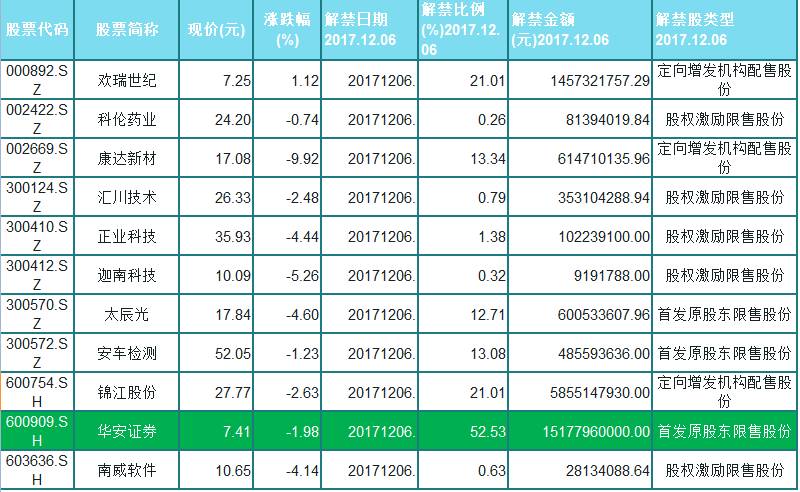 本日解禁股一览:
